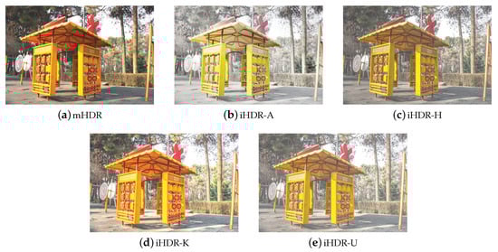 The generation of an iHDR image only requires a single LDR image. In this experiment, we chose the MIT-Adobe FiveK dataset [] as the source of the LDR images. The MIT-Adobe FiveK dataset includes 5000 high-resolution images of different scenes, which can cover a broad range of scenes, subjects, and lighting conditions. In this paper, we select four inverse tone mapping algorithms for generating iHDR images: