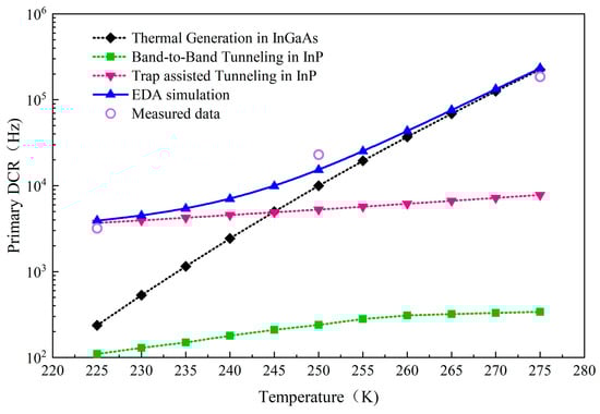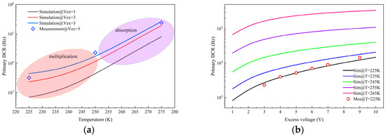- Petticrew, J.D.; Dimler, S.J.; Tan, C.H.; Ng, J.S. Modeling Temperature Dependent Avalanche Characteristics of InP. J. Lightwave Technol. 2020, 38, 4183. [Google Scholar] [CrossRef]