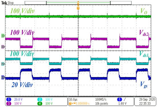 The stress across switch S1 and S2, as depicted in Figure 17, is found to be 40 V and 66 V, which is also much less than the VO.