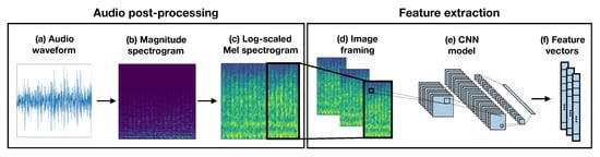 - Hershey, S.; Chaudhuri, S.; Ellis, D.P.W.; Gemmeke, J.F.; Jansen, A.; Moore, C.; Plakal, M.; Platt, D.; Saurous, R.A.; Seybold, B.; et al. CNN Architectures for Large-Scale Audio Classification. In Proceedings of the 2017 IEEE International Conference on Acoustics, Speech and Signal Processing (ICASSP), New Orleans, LA, USA, 5–9 March 2017; pp. 131–135. [Google Scholar]