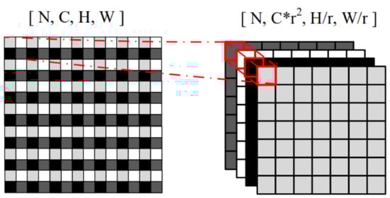 The TRP unit is composed of two branches, which output temporal status and SR reconstruction results , respectively. These two branches share the feature extraction module, which consists of multiple convolutional layers followed by the Rectified Linear Unit (Relu) activation layers. The Relu activation layers can make convergence much faster while still present good image quality. The branch of output can be regarded as a residual network with the number of channels . The output of the residual network is up-sampled through Depth to Space to obtain the reconstructed frame . Space to Depth is the inverse of Depth to Space proposed by FRVSR []. It is illustrated in Figure 3.