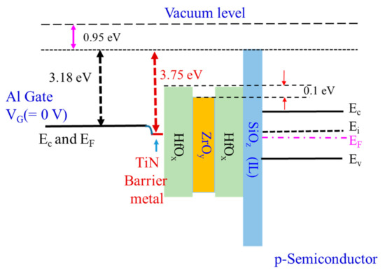 Concise energy band diagram of HK gate dielectric as VG = 0 V.