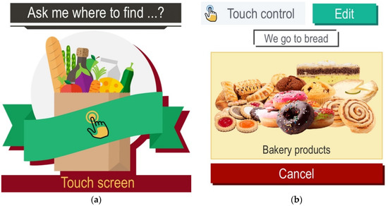 Examples of the graphical user interface (GUI) MultimodalHMInterface screenshots: (a) Start window; (b) Window for selecting a product from a specific category.