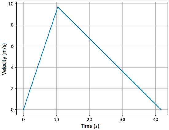 The resulting travel time is the value of the last element of the simulation time list. The robot speeds list contains the velocity profile for the given path. In Figure 12 can be seen an example of a velocity profile, in which can be easily recognized the parts of acceleration, constant speed, and deceleration.