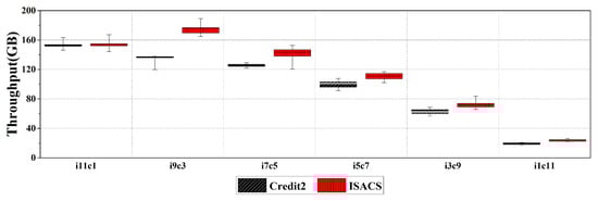 Jang et al. [] presented a loan and redeem mechanism in the Credit1 scheduler through the BOOST controlling method. They allocated BOOST credits derived from the previous scheduling round to all vCPUs in the current round; this process considers the BOOST frequency to control the I/O resource sharing of I/O-intensive VMs. However, allocating BOOST credits can limit continuous I/O resource occupancy in situations in which there are sufficient I/O resources and a small number of I/O-intensive VMs and can lead to performance interference of VMs with different workloads. ISACS does not limit the I/O performance of vCPUs because it guarantees pCPU occupancy only based on the independent I/O strength of each vCPU, regardless of the I/O degree of the neighboring vCPUs.