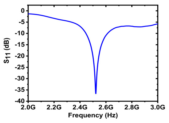 Measured S11 of the Tx coil matched at 2.515 GHz.