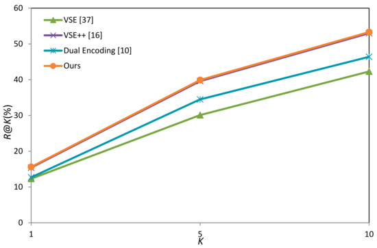 - Faghri, F.; Fleet, D.J.; Kiros, J.R.; Fidler, S. VSE++: Improved Visual-Semantic Embeddings. In Proceedings of the 29th British Machine Vision Conference (BMVC’18), Newcastle upon Tyne, UK, 3–6 September 2018. [Google Scholar]