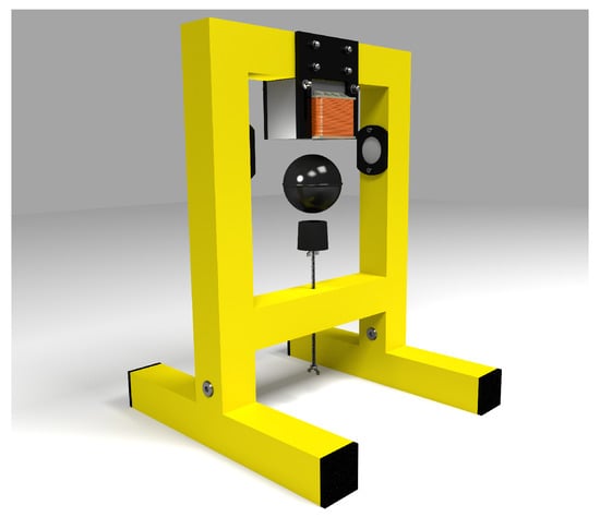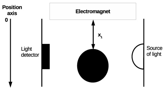 The mathematical description of the system will be based on Newton’s second law, where is the ball position, measured as the distance from the electromagnet, is the electromagnet coil current, and is the ball velocity. Ball speed can by calculated from value of force generated by the electromagnet, m is the mass of the ball, and g is the gravitational acceleration. The velocity of ball is given by formula (see [1,23]):