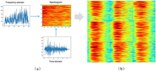 (a) Combine the time-domain figure and the frequency-domain figure into a spectrogram. (b) Spectrogram of the combined layers.