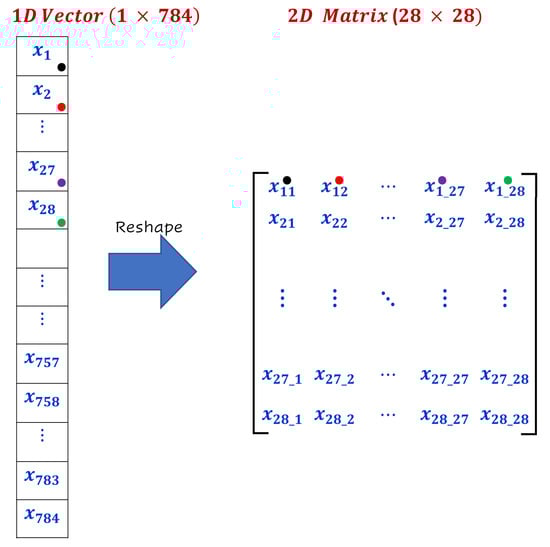 Figure 9. Illustration of the re-shaping operation of the dataset samples: the 1D vector was reshaped into a 2D matrix.