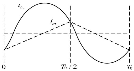 At the same time, within half a resonance period, the difference between the average value of the resonance current and the excitation current is the average value of the output current converted to the primary side, establishing the following two equations: