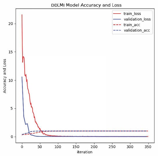 Average training and validation set accuracy performance over 50 iterations for DDLMI model.