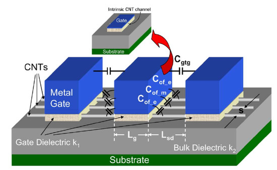 - Sinha, S.; Balijepalli, A.; Cao, Y. Compact Model of Carbon Nanotube Transistor and Interconnect. IEEE Trans. Electron Devices 2009, 56, 2232–2242. [Google Scholar] [CrossRef]