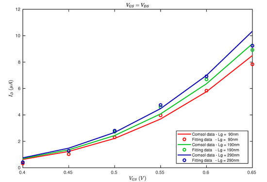 - Khakifirooz, A.; Nayfeh, O.M.; Antoniadis, D. A Simple Semiempirical Short-Channel MOSFET Current-Voltage Model Continuous Across All Regions of Operation and Employing Only Physical Parameters. IEEE Trans. Electron Devices 2009, 56, 1674–1680. [Google Scholar] [CrossRef]