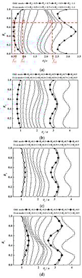 As shown in Figure 2, multi-resonant modes are varied as four parameters. It is clearly found that the length ratio R2 would not affect the resonances of the odd modes since the stub is ignored under the odd mode excitation; and the length ratio R2 affects the resonances of the even mode obviously. The fundamental odd mode shifts to lower frequency for K1 < 1 (shown in Figure 2a,b) and to higher frequency for K1 > 1 (shown in Figure 2c,d), as similar to the conventional SIR. Especially, in the condition of K1 > 1, at the lowest resonant frequency the even and odd modes of the proposed SLSIR join together, indicating different behavior from the resonant modes of the typical SIR. Therefore, by using these resonant curves, the structure can be designed for the different filters, for example dual-band BPF, tri-band BPF, UWB BPF and wide stopband BPF, by controlling the multi-resonant modes.