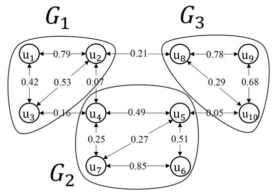 An example of the clustering result is shown in Figure 2. We obtain social group set from the social graph, where includes ; includes ; and includes .