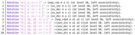 - The Coq Proof Assistant Reference Manual. Available online: https://coq.inria.fr/distrib/current/refman/ (accessed on 20 May 2019).