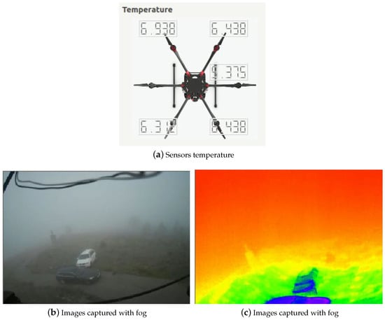 Although the mission described below was carried out under good weather conditions, due to the location of the place of operations, throughout the project, different tests were carried out with adverse weather conditions such as wind, cold, or fog, as shown in Figure 12. Although the UAV could fly in these conditions, its usefulness was reduced since the on-board cameras would not be able to transmit useful information about the fire.
