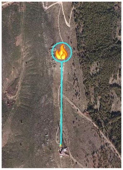 The experiments were performed with real fires in a forest located in Matachines in the North of the Community of Madrid, with different weather conditions, such as wind, cold, or fog, where the base had dimensions of (50 m × 50 m), surrounded by a forest environment. In these experiments, the fires were located at a distance of 600–1000 m from the base.