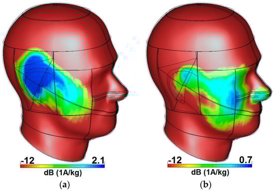Specific absorption rate (SAR) investigations for (a) Ant. 3 and (b) Ant. 7.