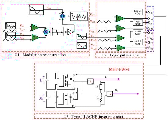 Compared with the HF-PWM strategy, the MHF-PWM strategy reduces the degree of over-modulation of the modulated wave and the triangular carrier, so that the output voltage does not have a local square wave. Therefore, the problem of the HF-PWM strategy in the Type-III ACHB inverter only achieving partial PWM modulation is effectively solved, and the quality of the output voltage waveform of the inverter is improved. And through the logical relationship operation, the equivalent switching frequency of the low-voltage unit is doubled, thereby avoiding the problem of relatively poor output voltage harmonic characteristics due to the low frequency of the high-voltage unit under hybrid frequency modulation.