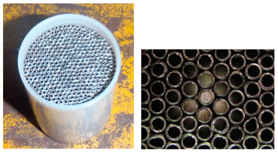 For a maximum flow rate of Q = 10 L/s (0.01 m3/s), the average air velocity through the capillaries can be calculated using Equation (1) to be v = 34 m/s.