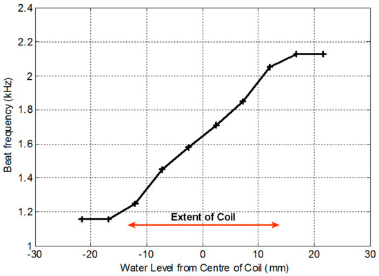 It can be seen from Figure 16 that, because of the way the beat frequency is generated using one oscillator with an increasing frequency, and the other decreasing, there is a linear relationship between the measured frequency and differential water level over the full extent of the coil height.