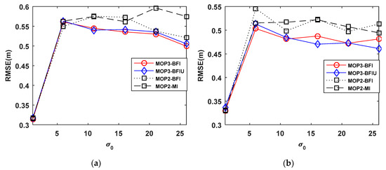From now on, we label Equations (31), (46) and (47) as MOP3-BFI, MOP2-BFI and MOP2-MI, respectively. And MOP3-BFIU denotes the multiple objective problems when using BFIU to replace BFI in Equation (31). The sequential importance resampling (SIR) particle filter [