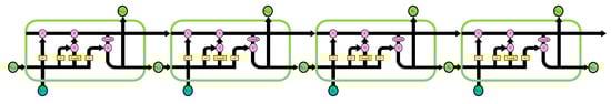 As one of the most advanced recurrent neural networks, the Long Short-term Memory (LSTM) recurrent neural network has shown remarkable results in numerous time-series learning tasks [,]. Unlike the neurons of traditional recurrent neural networks, the LSTM has memory blocks connected by successive layers, and it enables the network to selectively memorize the input training data through a unique three-gate structure. These structures ensure that the network structure can learn multivariate influences of nonlinear tasks. In addition, the cascade structure of the LSTM makes it has an excellent performance in time series problems. For example, there are some good examples of forecasting work based on LSTM. Wang et al. [] establish a hybrid day-ahead PV power forecasting model based on CNN and LSTM. This model uses CNN first extracts local features of data and applies LSTM to extracts the overall timing features of data, and the prediction performance is outstanding.
