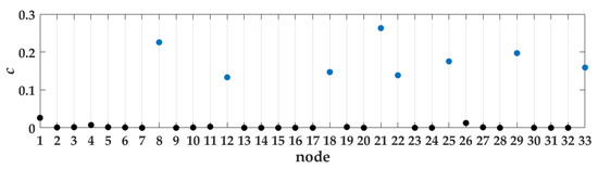 where is given by the distribution system operator (DSO) or refers to the empirical value [24]. indicates that the elements of “” round to the nearest integer less than or equal to “”. is the total number of the nodes in the ADN, and represents the total number of SOPs integrated in the system. This paper considers an SOP with two terminals. Therefore, during the clustering calculation, two terminals of one SOP are selected separately as two clustering centers. After the clustering result is obtained, two sub-areas of the terminal nodes are merged into one sub-area under the control of the related SOP. Then, the number of cluster centers is determined by (2).