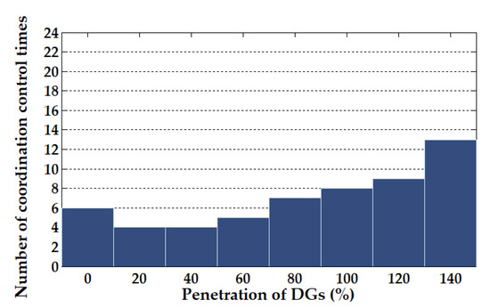 Number of coordination control times in scenario 3 with different DG penetrations.