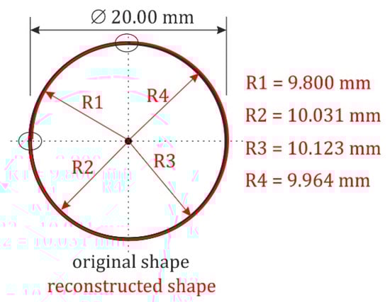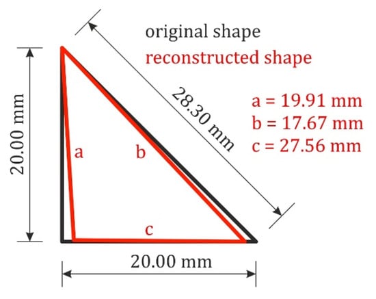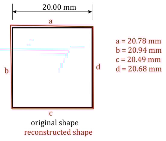 Using the analysis of the characteristic features connected with the signals with the respective harmonic amplitudes that occur in the defined time frame one can recreate the printed shapes basing on the spectrogram. It should be emphasized that the acoustic signals measured at the output of Information Infiltration Channel (IIC) output are affected by the noise and other channel disturbances. This situation renders the accurate time analysis impossible to determine the printing start and finish time (printhead movement) based on the acquired spectrograms. Thus, the printed shapes are recreated with some errors connected with the incorrect length of the straight lines or wall arches of the printed elements, among other things. However, when the speed and time of the printhead movement are known, determined based on the step duration specified in the spectrograms, one can estimate the printed shape dimensions basing on the graphical images [,,].