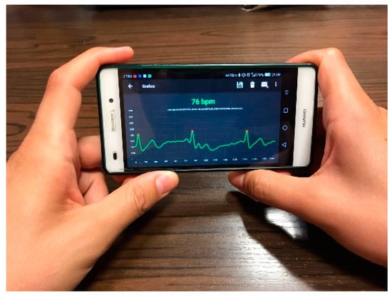 VITAL-ECG is a device to acquire the main vital parameters such as heart rate and ECG, SpO2, skin temperature, and humidity. In addition, it also monitors the level of physical activity. It is low-cost and wearable. It uses a mobile app for a smartphone or tablet to store, visualize (see Figure 3), and analyze the acquired signals.