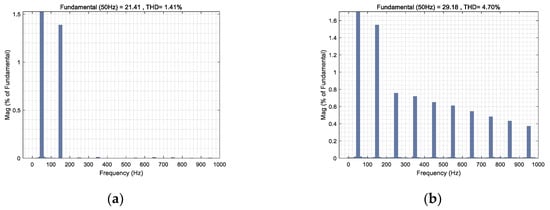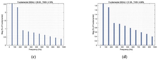 Input current Fourier decomposition; (a) H-bridge rectifier; (b) Bridgeless rectifier; (c) VIENNA rectifier; (d) Diode H-bridge boost rectifier.