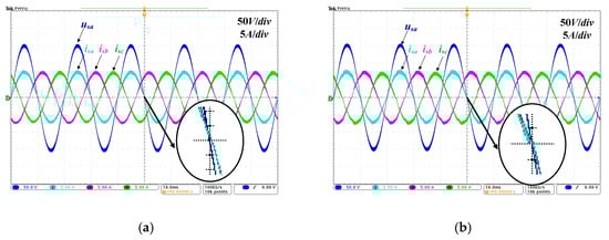 Input current and input voltage waveforms (a) cascaded three-phase H-bridge rectifier; (b) cascaded three-phase bridgeless rectifier.