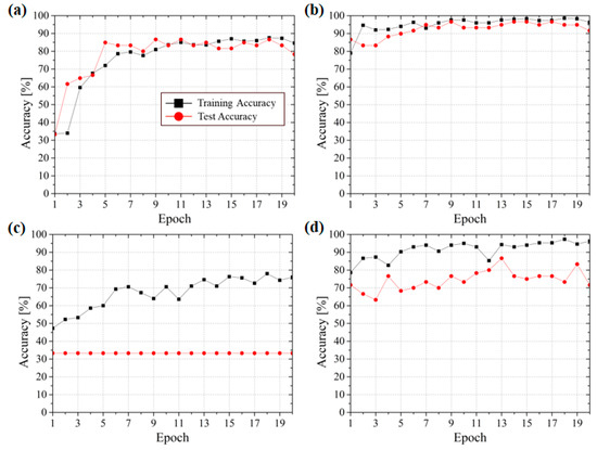 The test accuracy shows the model’s generalization performance and can represent the reliability of the model. To ensure the stability of performance we checked the trends of accuracy according to the number of epochs as shown in Figure 5.