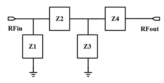 The circuit model of the proposed filter can be simplified as a Z-model circuit as illustrated in Figure 6. The impedance Z1, Z2, Z3, and Z4 of each resonator section can be written as the following equations.