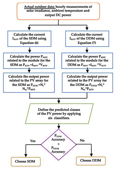 This section presents the adopted methodology to identify the most suitable model between the SDM and the DDM under different levels of solar irradiance and temperature by using the ML classification algorithms.