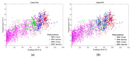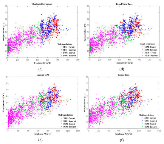 Six classification algorithms, as shown in Table 1, are chosen to identify which model between the SDM and DDM provide the best performance for a given solar irradiance and temperature. Therefore, each classification algorithm is based on two predictors: irradiance and temperature.