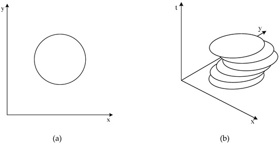 Firstly, the obstacle type is classified as static or dynamic [6,20]. Figure 2a describes static obstacle type and Figure 2b is an example of dynamic obstacle type. The static obstacle environment, which is also called the stationary obstacle environment, is a basic form of the CFPP problem. In this case, the obstacles do not change their shape or position. The CFPP problem in a static environment is the most basic model of the CFPP. This is one of the reasons why many papers use a static environment assumption [13]. The dynamic obstacle environment, which is also called the moving obstacle, can change the obstacle’s shape time dependently. This case considers the velocity and acceleration of MAs.
