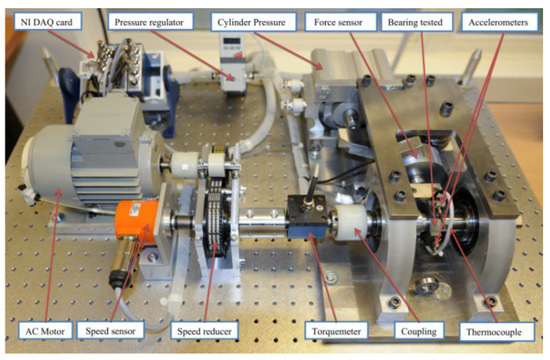 - Nectoux, P.; Gouriveau, R.; Medjaher, K. PRONOSTIA: An experimental platform for bearings accelerated degradation tests. In Proceedings of the IEEE International Conference on Prognostics and Health Management, PHM’12, Denver, CO, USA, 18–21 June 2012; pp. 1–8. [Google Scholar]