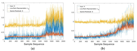 In this section, we introduce the robust deep auto-encoder network (RDA) to conduct robust state assessment. The RDA is inspired by robust principal component analysis (Robust PCA) [28]. For input sample set X, the RDA decomposes X into two parts , where represents a low-rank common representation part (some linear correlations between rows or columns exist as the training data generally have some structural information inside), S is a sparse matrix (caused by noise and anomalies which are usually sparse). When the RDA is used for anomaly detection, the loss function for X can be considered as the reconstruction error of plus the norm of S, as follows: