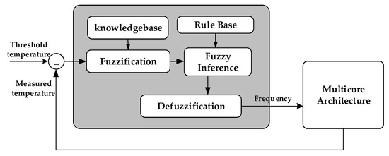 Due to the complexity of the thermal model, we adopted a fuzzy-based control policy. The main idea of the proposed policy was to take advantage of fuzzy logic to avoid the establishment of analytical models between the input and output parameters. The proposed policy based on fuzzy logic in a closed-loop is shown in Figure 4.
