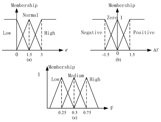 The fuzzy membership functions are shown in Figure 5. Every input linguistic variable has three values that can cover all essential situations, and we used the symmetric triangular function, which is a frequently-used type of the membership function.