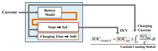 However, if an initial value error occurs, the CCM continues to make errors. Thus, the SoC has been calculated by applying an improved form of the CCM. Calculating the battery’s internal resistance by modeling the battery has a high degree of accuracy in minimizing the factors that affect the battery. Therefore, this paper predicts the SoC calculation based on modeling and manages expected battery lifetime according to charging and discharging times [4,5,6].
