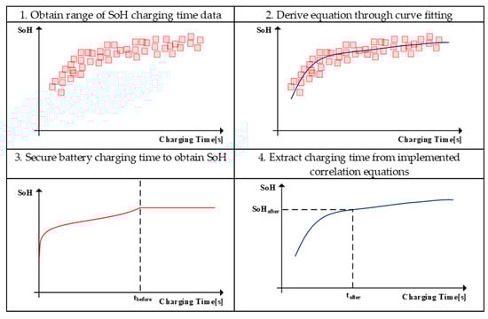 The SoH prediction method using the charging time is as shown in Figure 8 along with the proposed SoH determination method using the charging time.