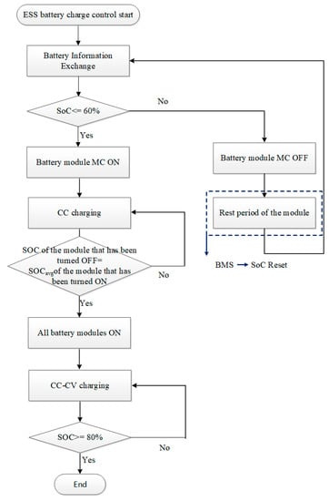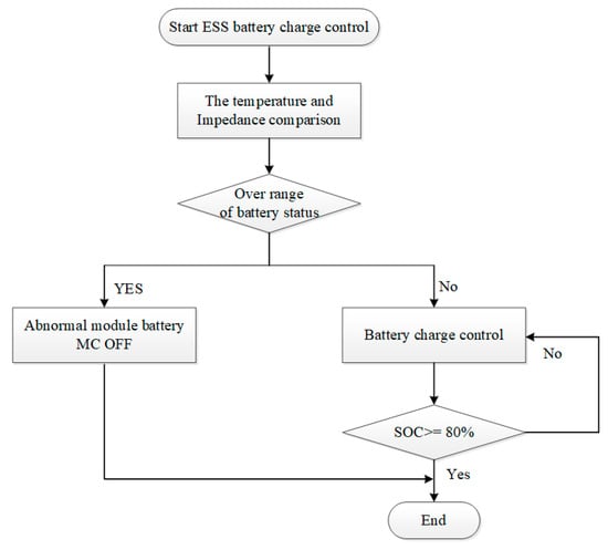 Therefore, in order to achieve a high degree of reliability and safety of the ESS, this paper proposes the following: (1) SoC and SoH algorithms, (2) selective charging control of the ESS, and (3) a fault diagnosis algorithm to prevent damage due to deterioration.