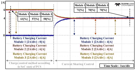 A number of modules perform current sharing since the current is sensed in the output by the DC/DC converter and the number of modules is determined by the SoC state. The current reference value is calculated by dividing the ESS output current value by the selected module, and the charging is conducted.