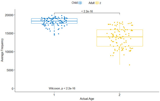 After the statistical analysis, univariate analysis is applied into the dataset divided into two age groups. By using univariate t-tests, the samples of the two age groups show variability by considering average frequencies. In order to testify the statistical significance of the evidence, a t-test is proposed based on the null hypothesis. Likewise, it calculates the differences among the variables in a dataset. A detailed interpretation to discriminate the two age groups is presented using boxplot as shown in Figure 4. The boxplots display variation in samples of the age groups and point out the intra- and interclass variability or correlation.