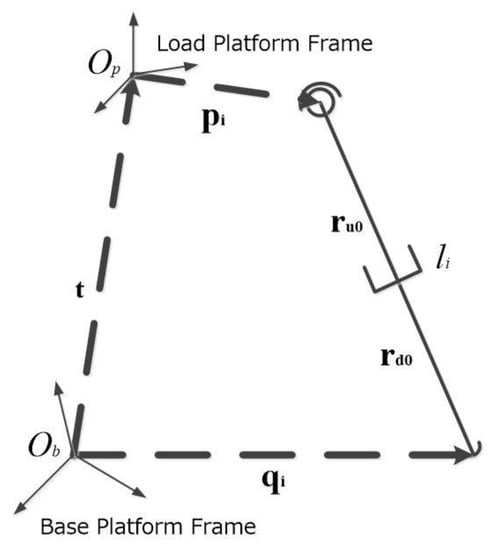 The vector of the connection point from the base to the load platform is Si, which is represented as
